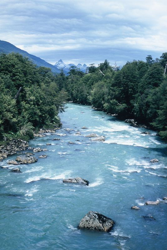Puyuhuapi, den 18.01.: Heute ging es bei wechselhaftem Wetter von Chaiten nach Puyuhuapi. Die Landschaft war wunderschön. Dichte Wälder, zerklüftete Berge, ungezähmte Flüsse, tiefblaue Seen und gewaltige Gletscher prägten das Bild.
