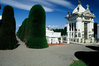 Heute waren wir unter anderem auf dem Friedhof, wo sich die reichen Schafzüchter- und Wollhändlerfamilien riesige Mausoleen bauen ließen. Grabsteine und -kammern zeugen von der Einwanderungsgeschichte der Stadt. Namen und z.T. auch Inschriften sind spanisch, englisch, französisch, deutsch, serbokroatisch und schwedisch. Während Roland und Christoph später noch eine kleine Wanderung zu einem Ausichtsberg machten, blieb ich fußschonend hier.