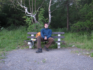 Immer wieder hoch und runter ging es nun, mit schön abwechselnden Schmerzen – beim Runter- und Geradeausgehen meldete sich der Knöchel, beim Bergaufgehen die Fersen, an denen sich inzwischen Blasen gebildet hatten. Aber dafür, dass ich die Schuhe zuvor nur 10 km lang getragen hatte, ging es eh ganz gut. Ist es bescheuert, auf so eine Tour fast neue Schuhe anzuziehen? Wahrscheinlich schon, aber das war bei dieser Unternehmung auch schon egal. Immerhin, auf eine Pause an dieser Bank zu verzichten, fiel schwer.