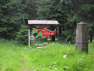 und über Gipfel Nr. 11, die Steinkuppe (8048 dm), dann steil und etwas abenteuerlich über unmarkierte Waldpfade hinunter und wieder herauf zum drollig dekorierten Drachenkopf (8054 dm). So, kurz nach 19:00 Uhr, das Dutzend war voll!