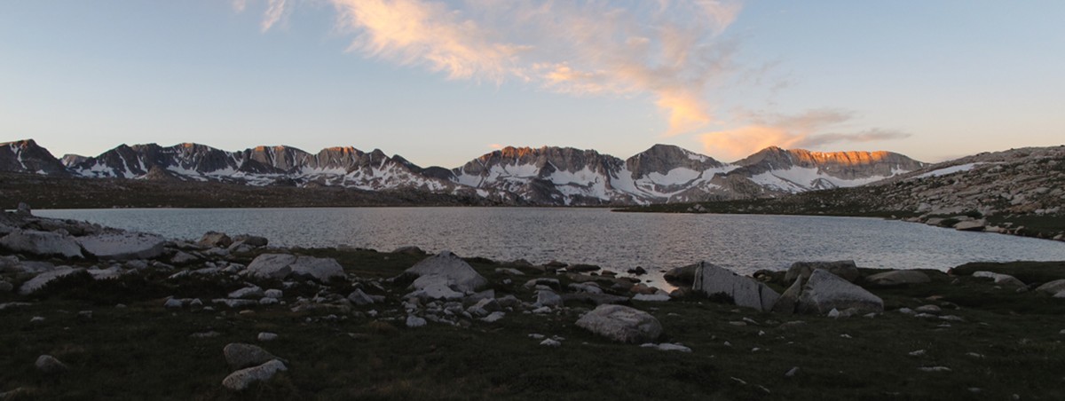 Unweit des Seeufers traf ich zu meiner Überraschung drei andere Wanderer – Ed, Loy und Jacob. Wir kamen ins Gespräch und teilten uns schließlich das Camp. Schon bald stellte sich heraus, dass Ed, der hier schon seit über vierzig Jahren regelmäßig unterwegs war, fast jeden Stein in der Sierra kennt. Mit Mitte 50 hatte er angefangen, die High Route in Abschnitten zu begehen. Diesen hier kannte er noch nicht und die drei hatten vor, nach einem Angeltag am nahegelegenen Grinnell Lake übermorgen Bighorn Pass zu überschreiten, der bei mir morgen früh anstand.
