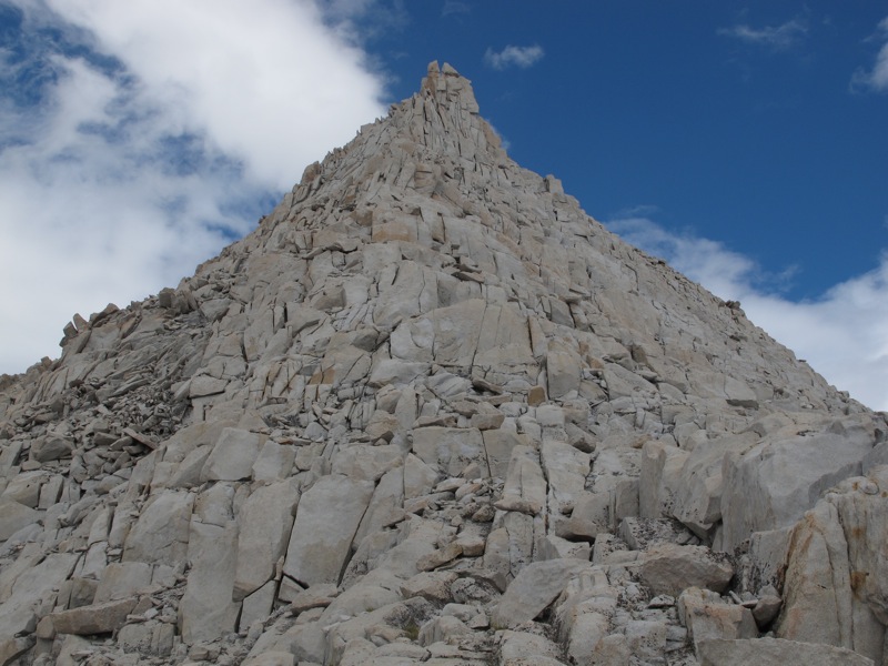 Der Anstieg zum 12200 ft (3718m) hohen Pass führt erstaunlich sanft über Wiesenhänge und Granitplatten vom Ostende des Sees hinauf. Ganz entspannt kann man den Übergang über die Mono Divide erreichen. Mount Abbot lockte mit seinem direkt vom Pass hinaufziehenden Grat, doch leider hatte ich keine Zeit für einen Besteigungsversuch.