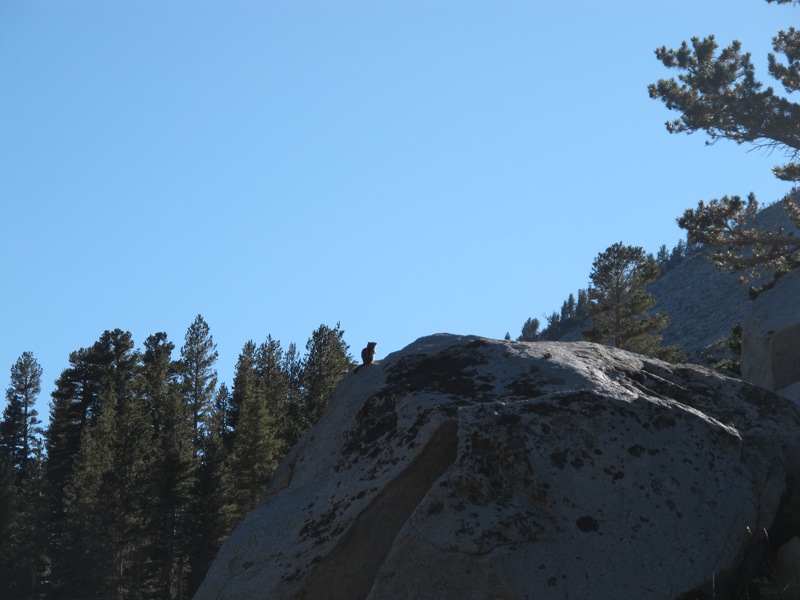 Um es trotzdem bis abends bis an mein Ziel zu schaffen, legte ich am Abstieg vom Tuolumne Pass den Abstiegsturbo ein: Jede halbwegs steile Passage rannte ich mehr hinunter als dass ich ging; so kam ich schnell vorwärts. Viele Wanderer kamen mir hier entgegen – einige davon sichtlich unerfahren und unfit. Einerseits wunderte ich mich ein wenig, wer hier so alles unterwegs war, andererseits ist es ja erfreulich, wenn auch unsportliche Menschen das Wandern für sich entdecken und sich heraus in die Natur trauen.