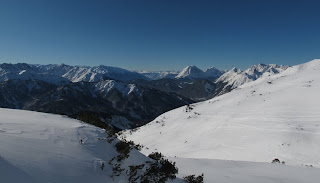und nach einer Querung kaum verspurte Hänge genießen konnten. Eine tolle Abfahrt!