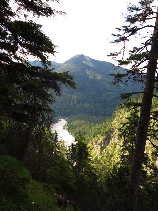 Kurz nach halb sechs legt ich am Parkplatz los und wurde gleich freudig von einem kleinen Schwarm Bremsen begrüßt. Deren Freude konnte ich leider nicht teilen und verlegte mich darauf, allzu eifrige Kontaktaufnehmer zu erschlagen. Im Laufe des Aufstiegs wurden die Plagegeister dann zum Glück immer weniger.