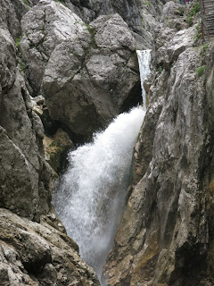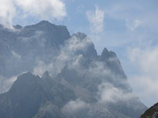 Nach solchen Überlegungen und Ergötzen an den Wasserspielen in der Klamm, komme ich auch schon zu deren Ende. Bis zur Höllentalangerhütte ist noch Stau, dort sowieso die Hölle los und dann wird es schlagartig einsam.