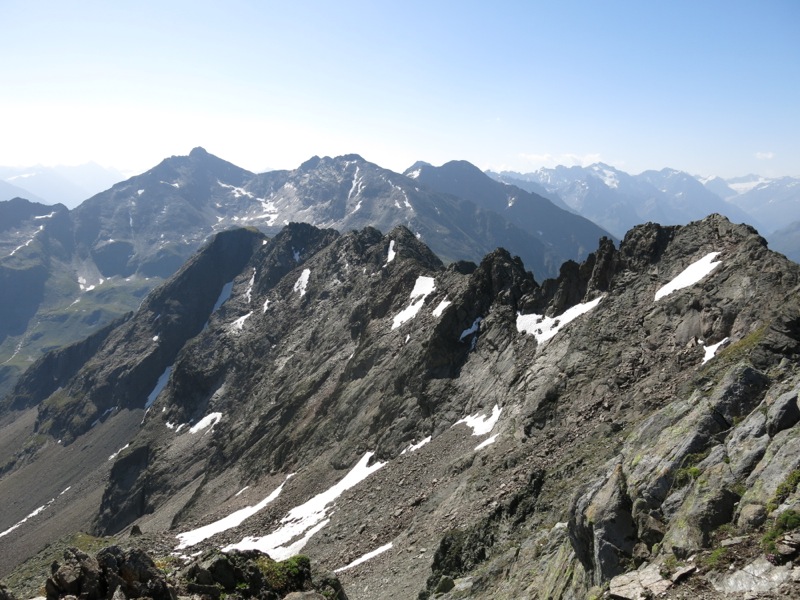 Von hier aus sieht der Ludwigsburger Grat ganz schön wild aus; links im Hintergrund der Fundusfeiler